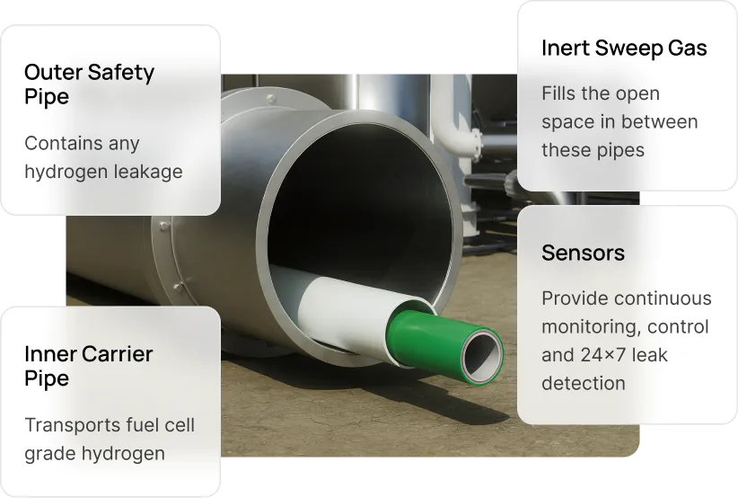 In 2023, H2C Safety Pipe is engaged by the largest publicly-traded hydrogen infrastructure company to construct a full-size prototype in Houston, Texas. This work was successfully completed in 2024.