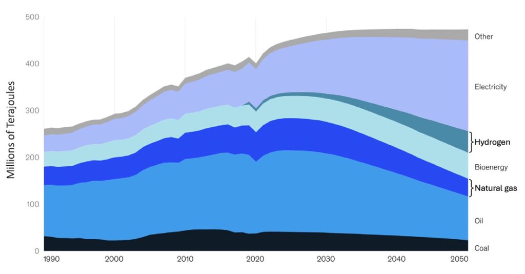 Figure 2. Final energy consumption per fuel in the USA. (Source: McKinsey & Company, ‘Global Energy Perspective 2022’, April 2022.)